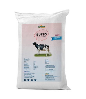 Bufto, the rumen buffer, is a unique blend of rumen buffering agents, probiotics, prebiotic, minerals, vitamin and amino acid to support ruminal acidosis and restore the normal ruminal pH and microflora.