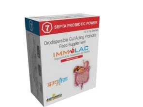 Orodispersible Gut Acting Probiotic Food Supplement Immulac is a delectable blend of 7 Gut Acting Probiotics to maintain intestinal pH, improve gut protection, promote healthy digestion and enhance gut immunity. Immulac improves biosynthesis of Vitamin...
