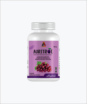 Auritrol is a grape skin supplement, a nano-emulsified resveratrol phosphatidyl choline-serine-ethanolamine complex enriched with bioenhancer and metabolic potentiator technology. AURITROL (Grape Skin Nanophosphosome®), a potentiated phospholipid complex, supports cognitive and memory function and helps to improve visual impairment, as it easily crosses the gut barrier, resulting in significantly higher blood levels that ultimately improve the cases of overweight patients suffering from diabetes mellitus type II. The complex acts as a carrier-mediated transport system, which directs the resveratrol to reach the systemic circulation and also increases its absorption and bioavailability. Bioenhancer and metabolic potentiator technology enhances the permeability of intestinal microvilli and improves resveratrol absorption as well as prevents its metabolic reduction through inhibition of P-gp, CYP3AG, and UGT.