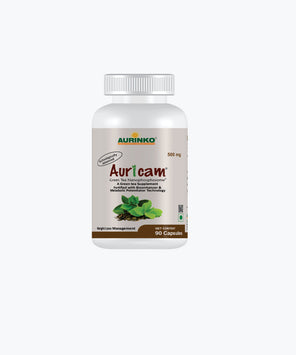 Auricam is a green tea supplement, a nano-emulsified EGCG (epigallocatechin gallate) phosphatidyl choline-serine-ethanolamine complex enriched with bioenhancer and metabolic potentiator technology. Auricam (Green Tea Nanophosphosome®) contains polyphenols, i.e., EGCG and caffeine, and easily crosses the gut barrier, resulting in significantly higher blood levels. Potentiated phospholipid complex acts as a carrier-mediated transport system, which directs the EGCG and caffeine to reach the systemic circulation and also increases its absorption and bioavailability. Bioenhancer and metabolic activator technology enhances the passive diffusion and active transport mechanism through intestinal microvilli to improve EGCG and caffeine absorption as well as prevent its metabolic reduction through inhibition of the P-gp efflux pump, CYP3AG, and UGT.