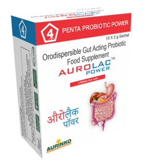 Aurolac Power is an advanced blend formula of 4 gut-acting probiotics to maintain intestinal pH, improve gut protection, promote healthy digestion, and enhance gut immunity. AUROLAC Power improves biosynthesis of Vitamin B, Vitamin K & Folic acid. These gut-acting probiotics produce bacteriocins to act against pathogenic microbes & reduce digestive disturbances.